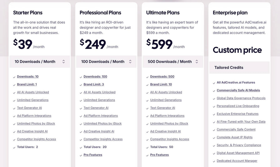 AdCreative.ai 料金プラン