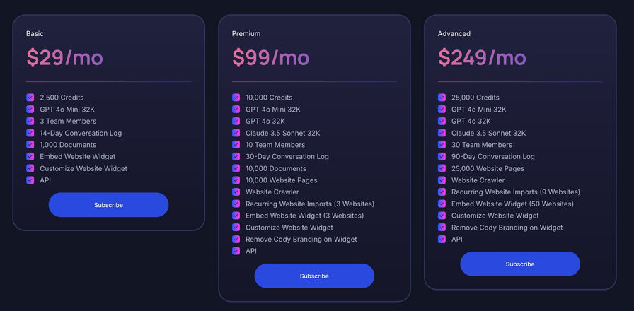- 顧客対応:WebサイトにCodyのチャットボットを埋め込み、来訪者の質問対応や資料請求受付を24時間自動化