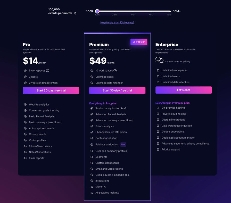Usermavenは、専門的な知識がなくても使える、AIを活用した行動分析ツールです。 ウェブサイトやアプリで、ユーザーが「どのように使っているか」を分かりやすく可視化し、より良い改善や判断をサポートします。 Cookieを使わないプライバシーに配慮した設計で、Google Analyticsの代替としても安心して使える新しい分析ツールです。