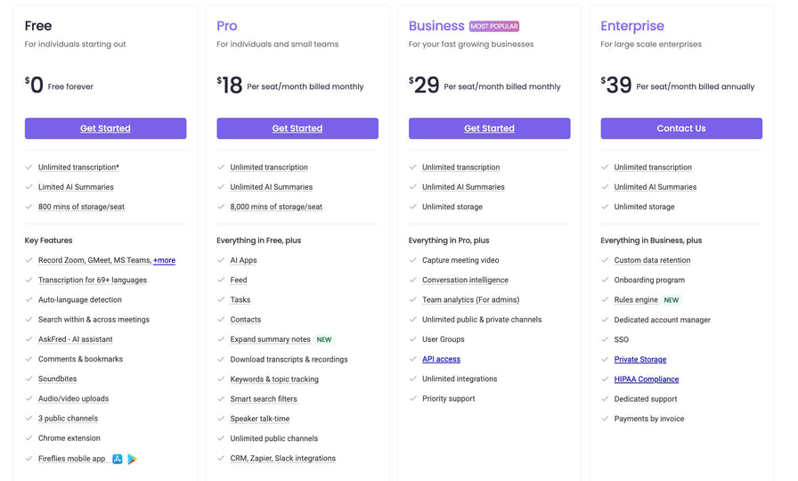 Fireflies.ai 料金プラン