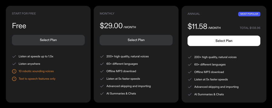 Speechify 料金プラン